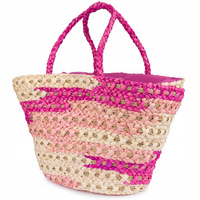 Różowy duży kosz Torba damska na lato boho koszyk SŁOMIANY modny