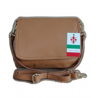 Włoska listonoszka, przewieszka ,Vera Pelle srebrne okucia ,szeroki pasek, Camel VP742C
