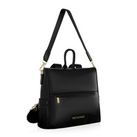 Czarny plecak z wodoodpornego nylonu wyposażony w port USB i stabilizujące nóżki na spodzie - Himawari
