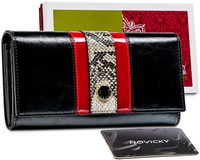 Czarno-czerwony portfel damski skórzany z akcentem - Peterson