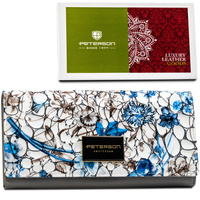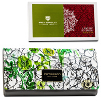 Poziomy portfel damski w kwiatowy wzór z wewnętrzną kieszonką na suwak - Peterson
