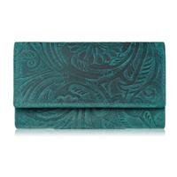 Ciemnozielony portfel damski skórzany z toczeniem kwiatowym RFID Paolo Peruzzi AL-13-GB