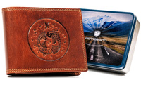 Duży, skórzany portfel męski z tłoczeniem przedstawiającym znak zodiaku - Peterson