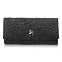 Portfel damski skórzany z toczeniem w kwiaty czarny z ochroną RFID Paolo Peruzzi AL-12-BL
