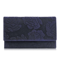 Portfel damski skórzany vintage w kwiaty granatowy duży Paolo Peruzzi T-108-HDB