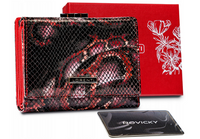 Lakierowany portfel damski wysokiej jakości zdobiony wężowym wzorem - Rovicky