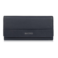 Poziomy portfel damski skórzany granatowy w kwiaty z metalowym logo Paolo Peruzzi AL-13-NV