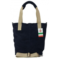 Miękki zamszowy worek na ramię ,pojemny Włoski shopper Vera Pelle ,Granatowy W234BS