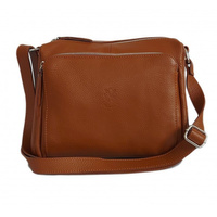 Włoska listonoszka, przewieszka A5 trzy komory skórzana Florence pojemna Camel VPS8XC