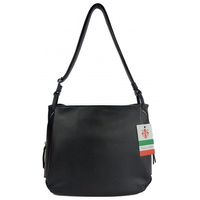Klasyczna Włoska torebka skórzana na ramię mieści A4 ,Vera Pelle , Czarna MVN14N