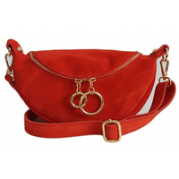 Czerwona zamszowa listonoszka - nerka Włoska Vera Pelle złote okucia kółka LN633R