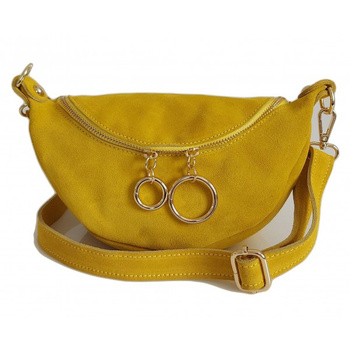 ( ilość produktów: 1217 )Żółta zamszowa listonoszka - nerka Włoska Vera Pelle złote okucia kółka LN633GIA