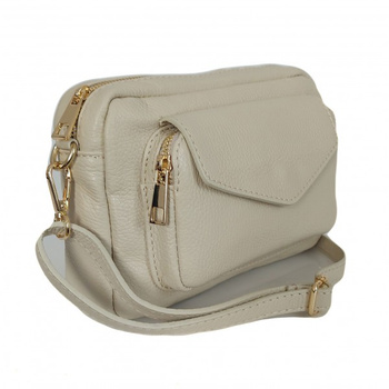 Urocza Włoska skórzana listonoszka Vera Pelle , pojemna złote okucia Jasny Beż MCZ45T