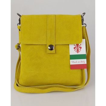 Duża zamszowa listonoszka ,chlebak Vera Pelle ,pojemna przewieszka A5 Żółta VPZ55GLL