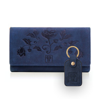 Portfel damski skórzany vintage z saszetką, granatowy, Paolo Peruzzi