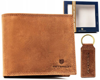 Zestaw prezentowy: skórzany, duży portfel męski i brelok - Peterson