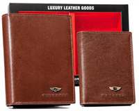 Zestaw prezentowy: elegancki skórzany portfel, etui na karty i brelok - Peterson