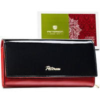 Pojemny, skórzany portfel damski z systemem RFID w czarno-czerwonym kolorze - Peterson
