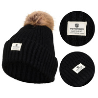 Czarna czapka z pomponem do zimowych stylizacji - Peterson