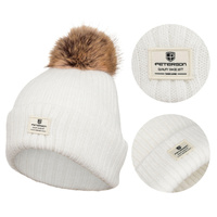 Ciepła biała czapka damska z futerkiem - Peterson