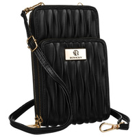 Torebka-portfel ze skóry ekologicznej w czarnym kolorze z modnym marszczeniem na froncie - Rovicky
