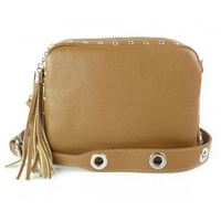 Włoska kopertówka listonoszka biglówka Vera Pelle złote okucia łańcuszek Camel LKB35C