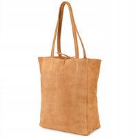 Zamszowy worek , Włoska skórzana torba xl a4 Camel shopper bag W356C