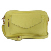 Urocza Włoska skórzana listonoszka Vera Pelle , pojemna złote okucia Limonkowa MCZ45GIA