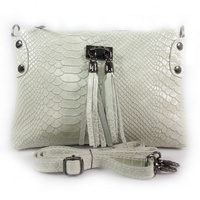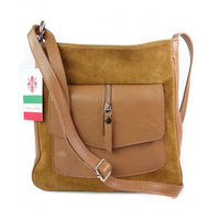 Skórzana torebka listonoszka Vera Pelle złote okucia,frędzelek, zamsz Zieleń VP113V