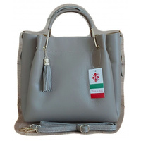 Włoski kuferek Shopperka A4 ,złote okucia + frędzelek Vera Pelle Beżowy KLV33T