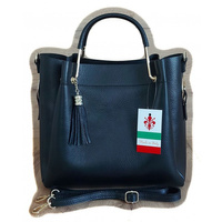 Włoski kuferek Shopperka A4 ,złote okucia + frędzelek Vera Pelle Czarny KLV33N