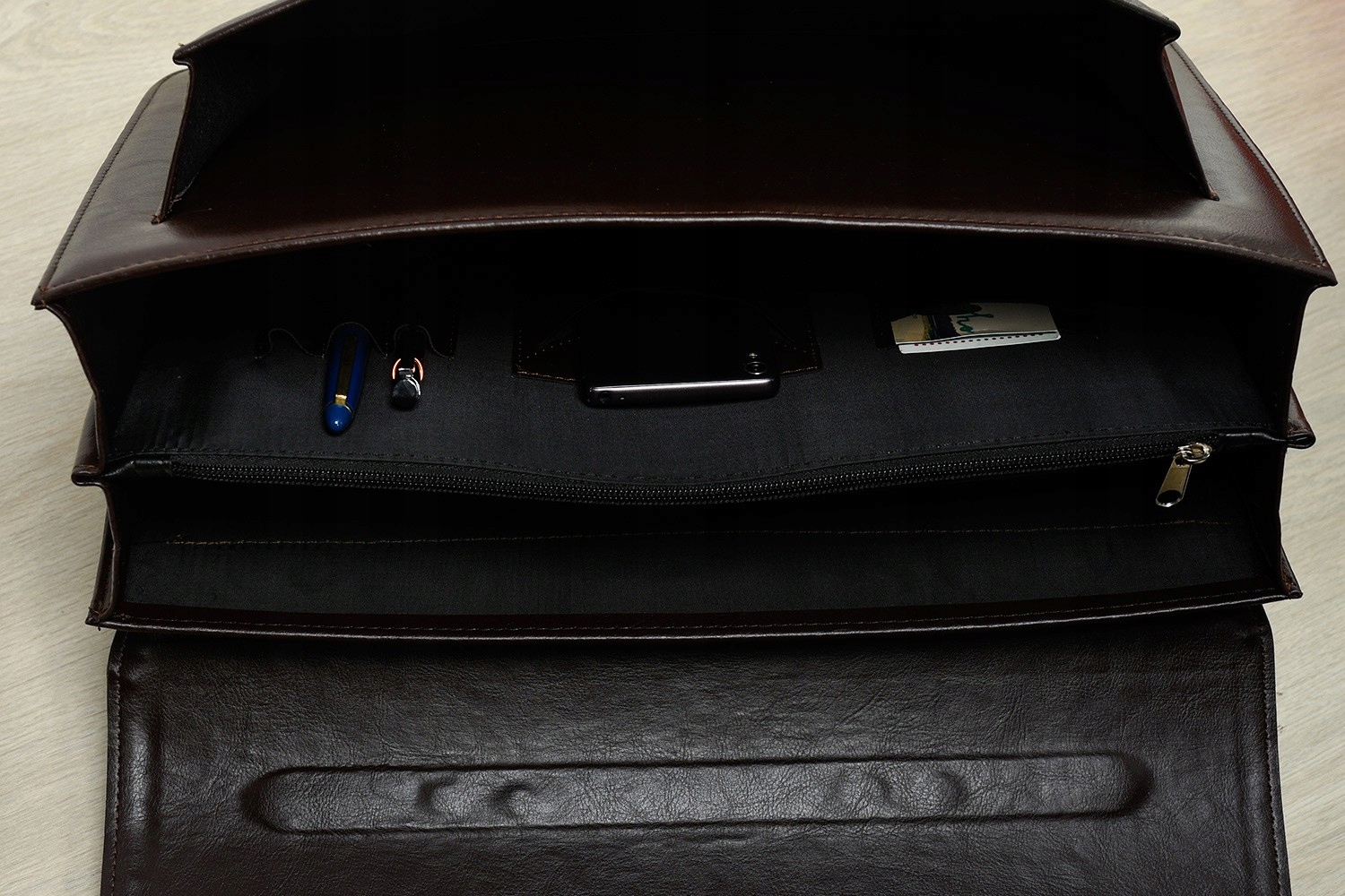 - Dodatkowe informacje: Pod spodem 4 solidne ćwieki, dzięki którym teczka dodatkowo jest zabezpieczona przed zatarciami/brudem i jest stabilna podczas spoczynku. Pod klapą jest jeszcze jedna komora.