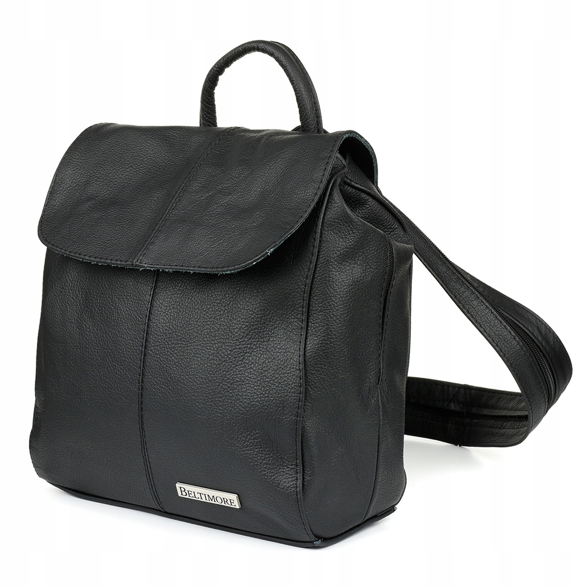 Solidny, skórzany, damski plecak, wyprodukowany w Polsce, ze skóry naturalnej Model NATALIA marki Beltimore®- w tej ofercie dostępny jest kolor czarny plecaka.