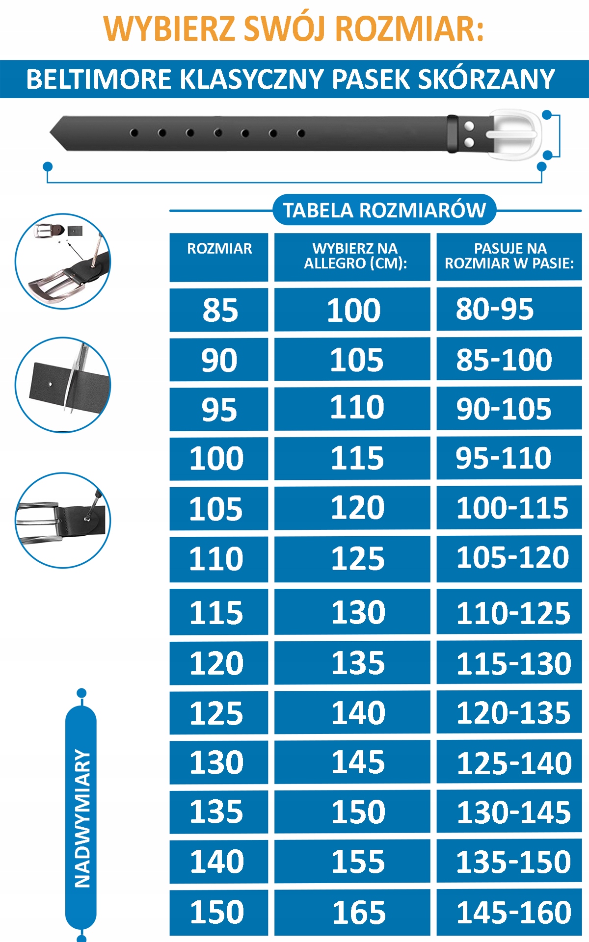 - Każdy pasek ma dodatkową szlufkę ułatwiającą noszenie paska