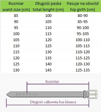 Sprawdź poniżej w rozpisce jaka zatem długość paska będzie odpowiadała Twojemu rozmiarowi i wybierz odpowiednią aukcje.