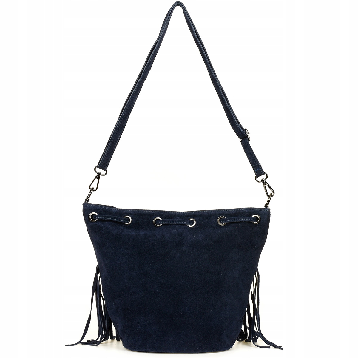 Damska, skórzana zamszowa torebka worek, listonoszka na ramię z usztywnianym dnem!