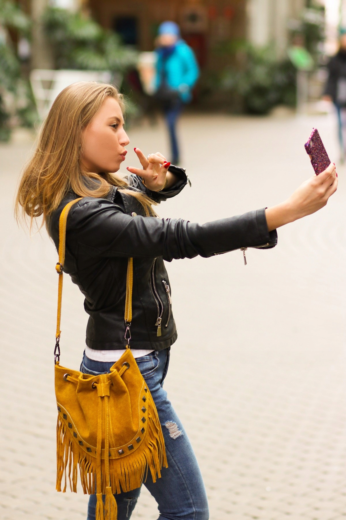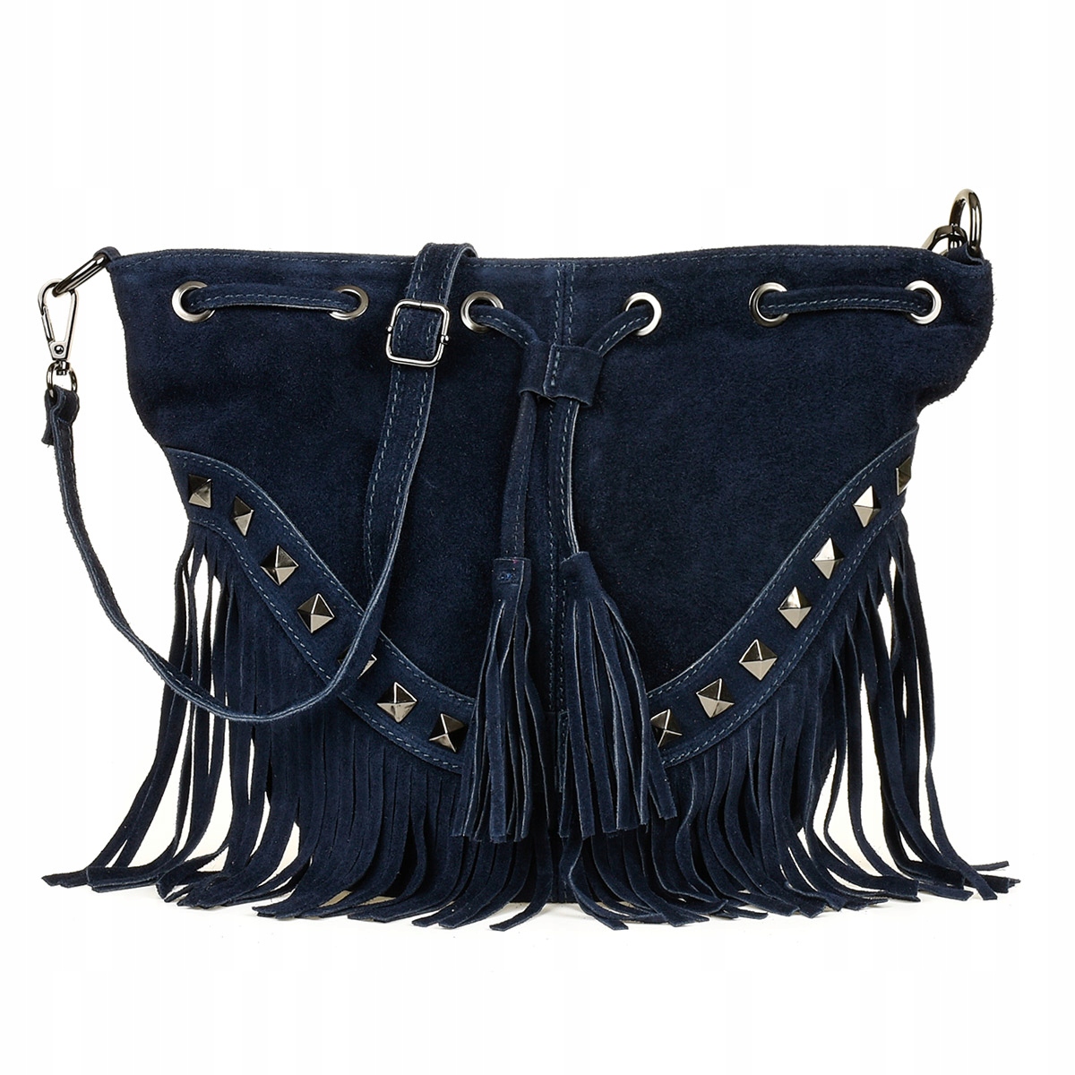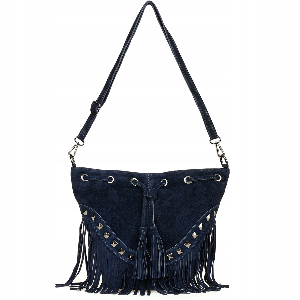Posiada widoczne na zdjęciach ćwieki i frędzle. Jest bardzo wygodna w użytkowaniu, nie za duża, ale dzięki swojemu fasonowi bardzo pojemna!