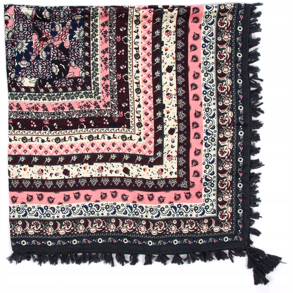 Duża ludowa chusta frędzle MODNA Folk wzór Apaszka