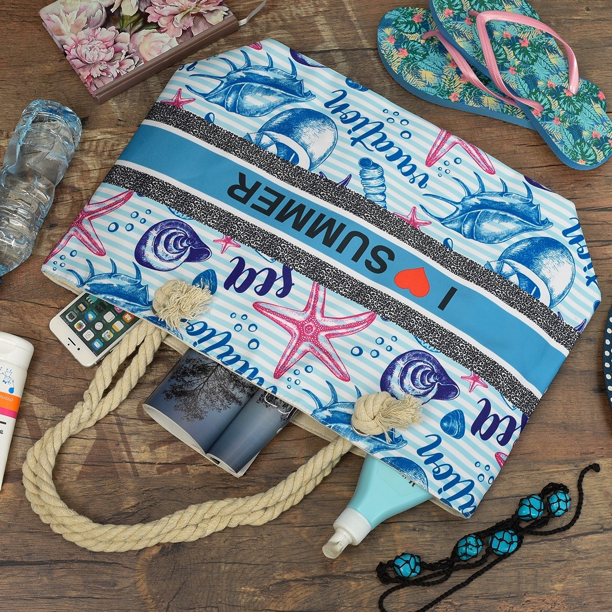 Duża , modna, nowa, torba plażowa, ważki summer idealna nie tylko na plażę, ale także na zakupy, piknik rodzinny, spacer po lesie ! Płócienna torba plażowa, lekka, ale i solidnie wykonana. Wewnątrz jest wyścielona podszewką. Wygodne, długie uchwyty/sznury sprawią, że z łatwością zarzucisz torbę na ramię Solidny zamek błyskawiczny dzięki czemu przedmioty nie będą wypadały z torby. Torba idealnie dopełni każdą letnią stylizację !