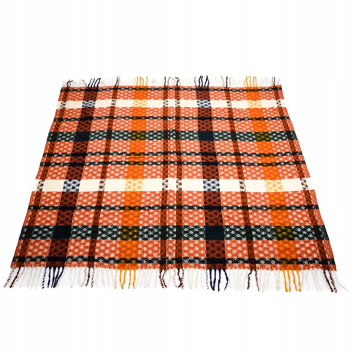 Modny, duży, przyjemny w dotyku szalik damski z oryginalnym wzorem w kratę i frędzlami