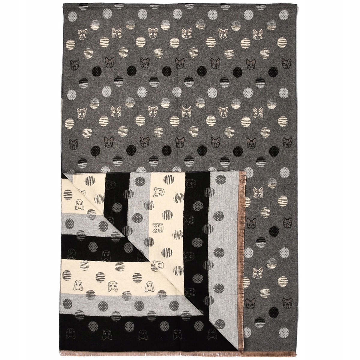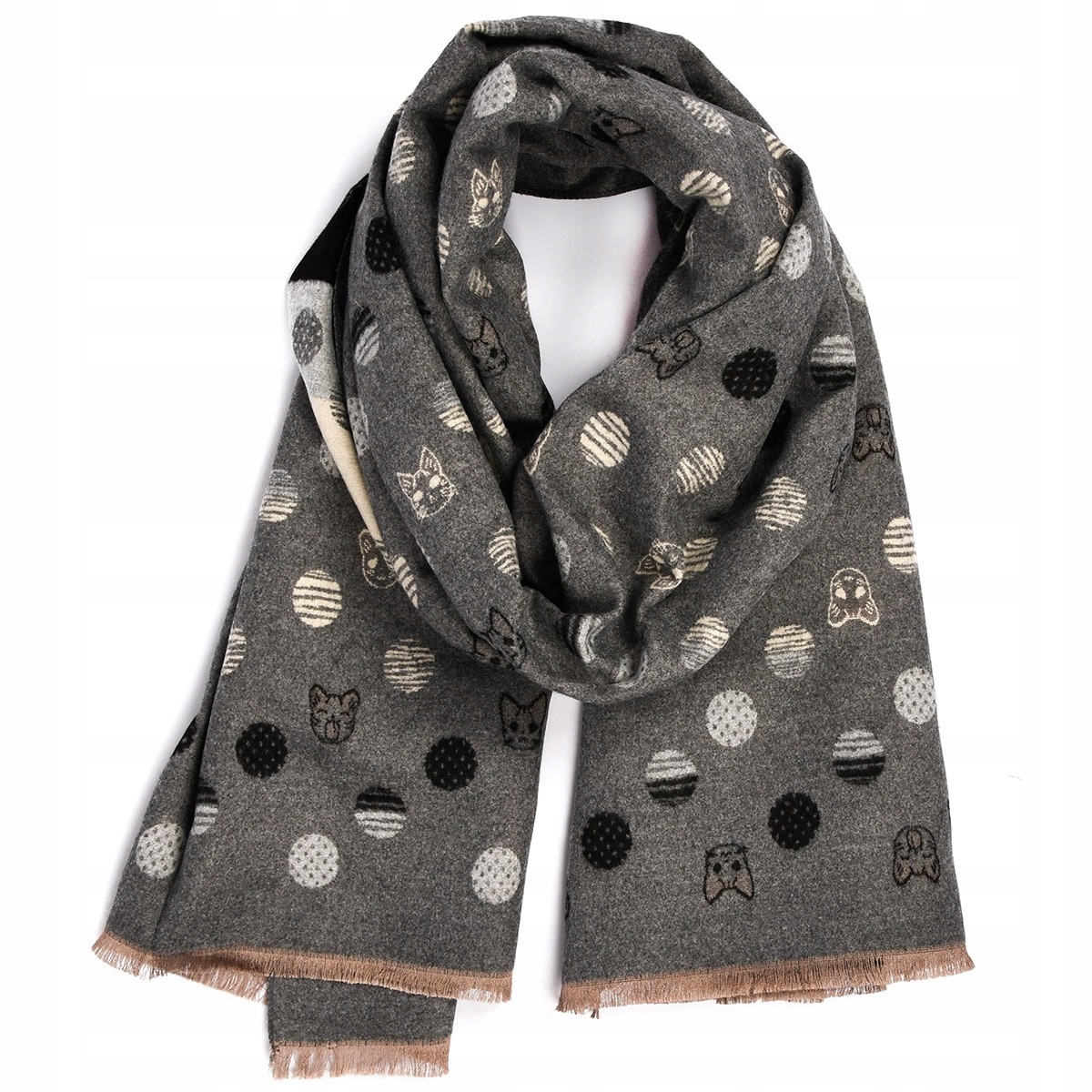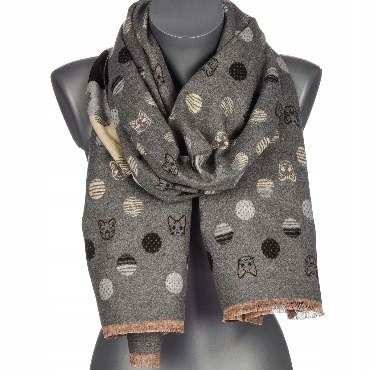 Modny, duży, przyjemny w dotyku szalik damski dwustronny z nietypowym wzorem w koty - idealnie dopełni każdą elegancką i casualową stylizację