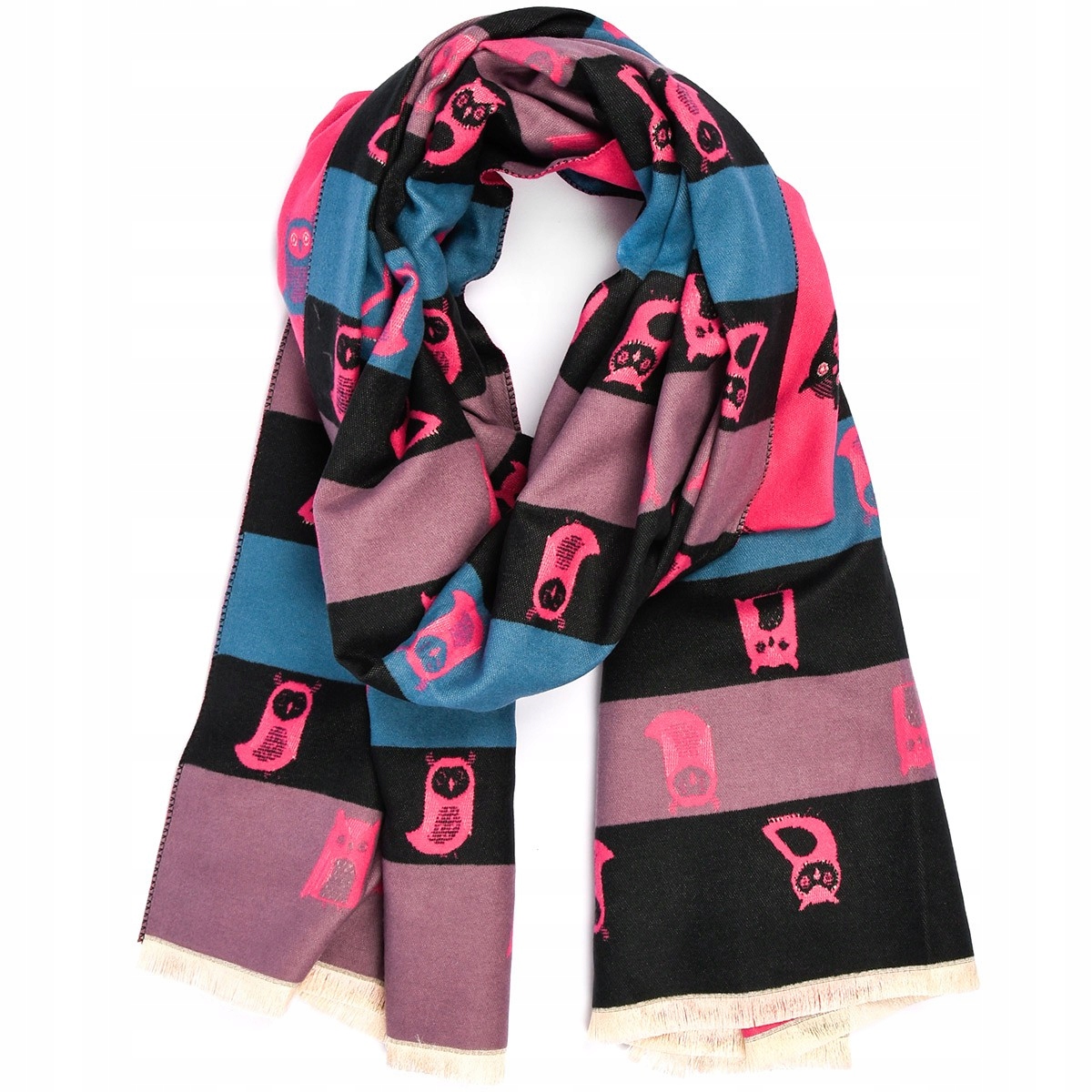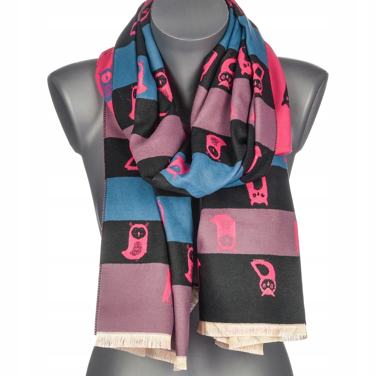 Modny, duży, przyjemny w dotyku szalik damski dwustronny z nietypowym wzorem - idealnie dopełni każdą elegancką i casualową stylizację