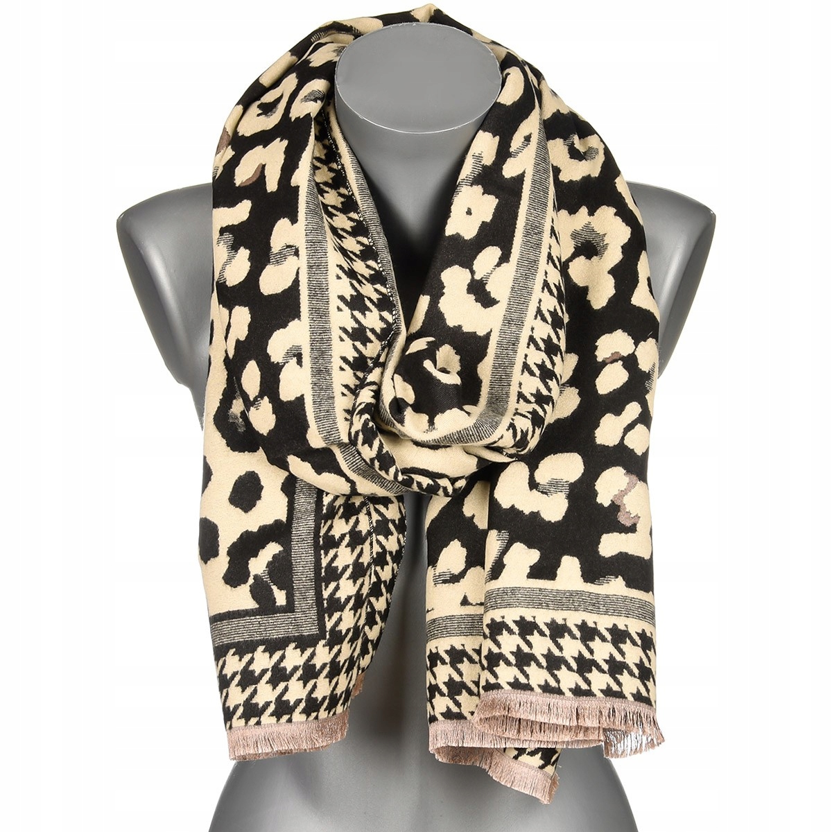 Modny, duży, przyjemny w dotyku szalik damski z oryginalnym wzorem w cętki- dopełni każdą elegancką i casualową stylizację