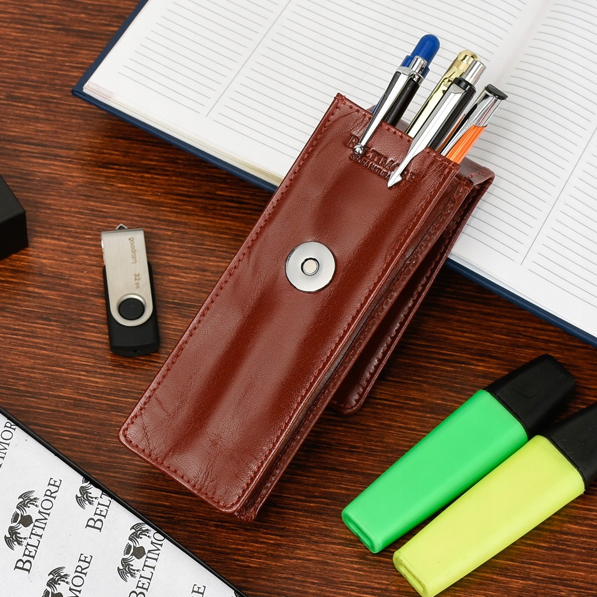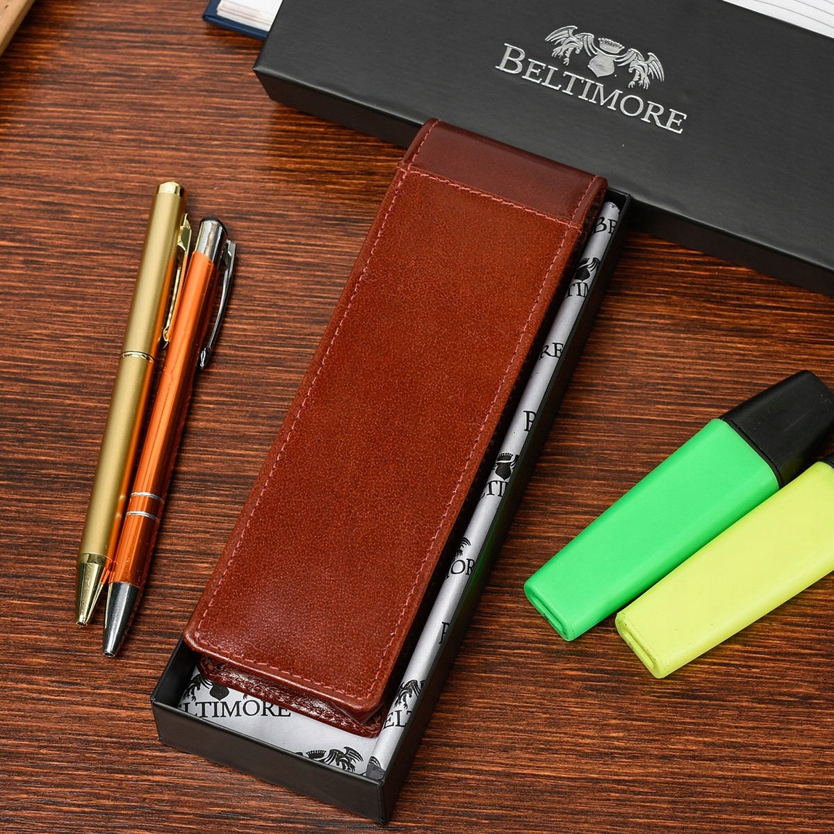 Piękne, skórzane etui na długopisy / pióro w brązowym kolorze marki Beltimore®. Etui dedykowane jest zarówno dla kobiet jak i mężczyzn.