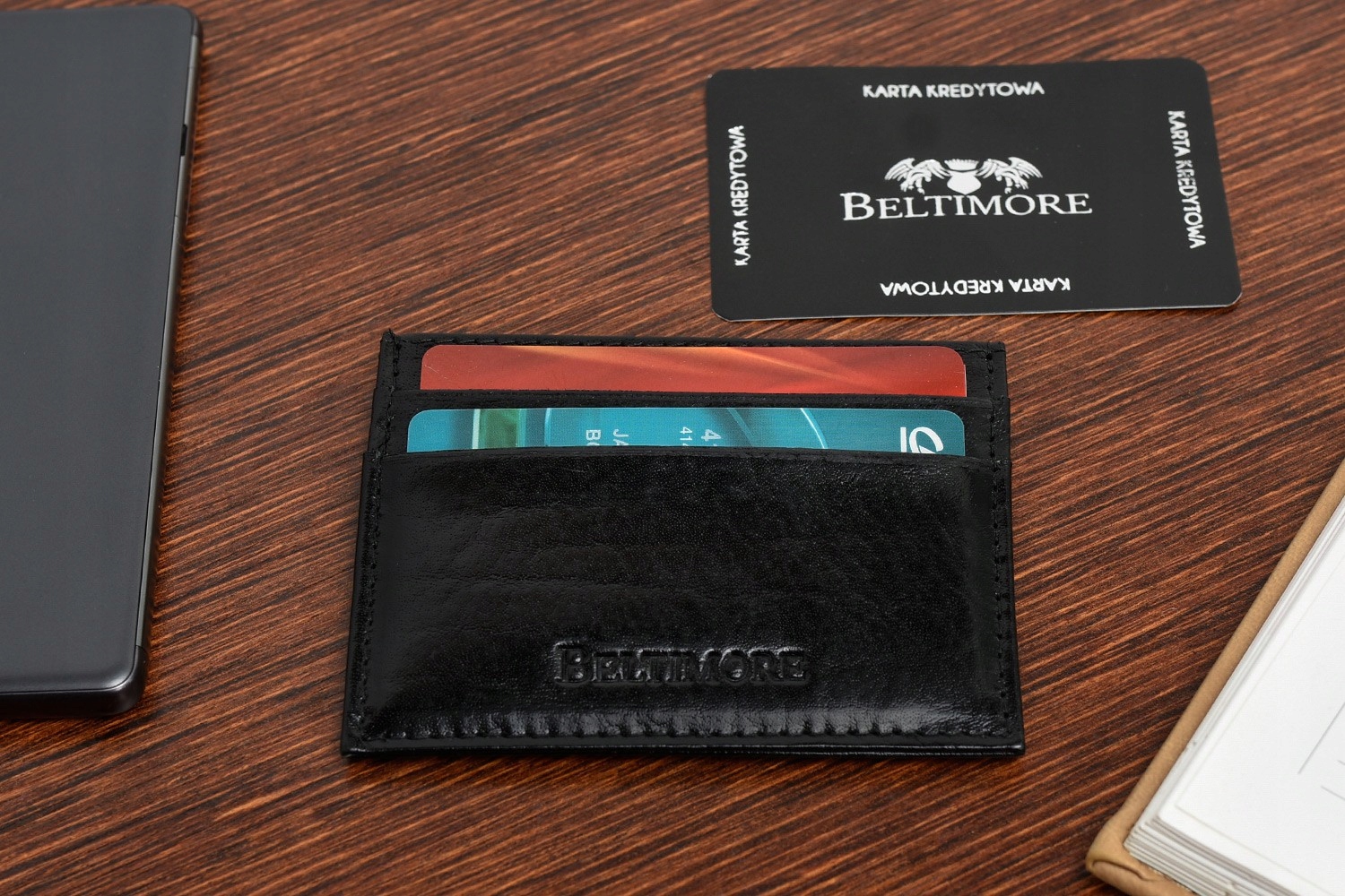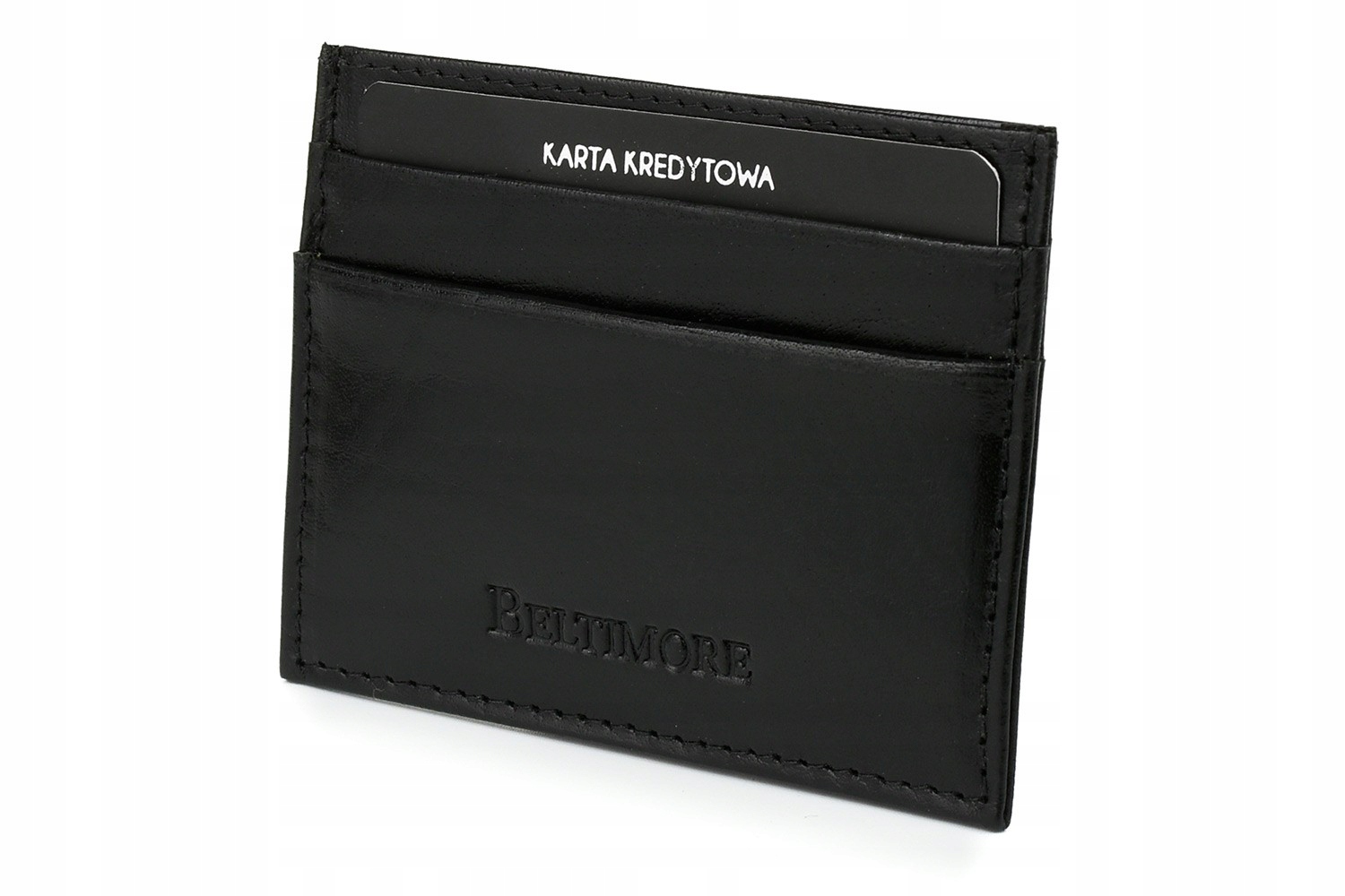 Piękne, skórzane etui na karty, dokumenty/ mały portfel w czarnym kolorze, marki Beltimore®. Etui dedykowane jest zarówno dla kobiet jak i mężczyzn.