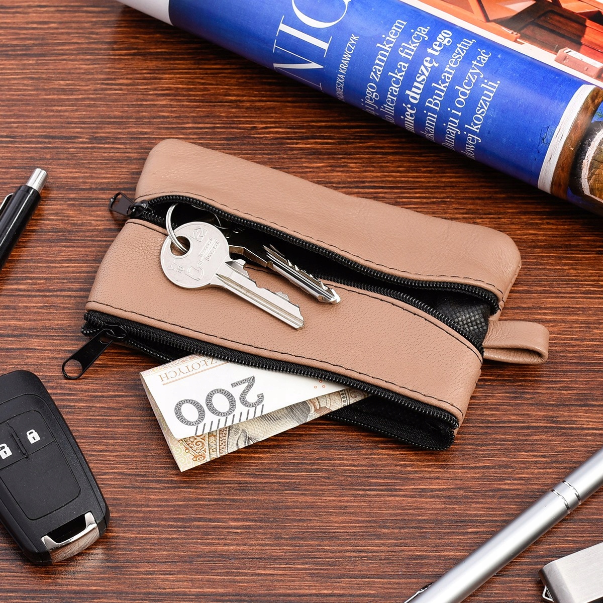 Etui na klucze duże trzykomorowe skórzane pojemne