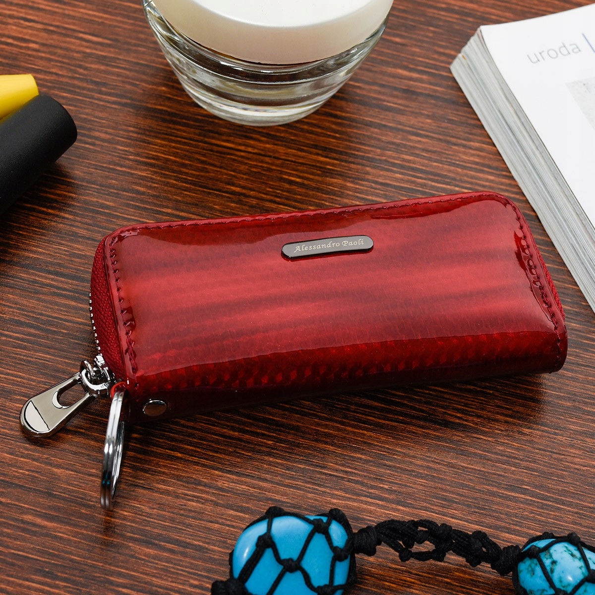 Piękne, eleganckie, stylowe etui na klucze wykonane z lakierowanej skóry naturalnej, włoskiej marki Alessandro Paoli w oryginalnym, czerwonym kolorze. Etui to jest dodatkowo wzbogacone o system antykradzieżowy RFiD. Odbija impulsy magnetyczne uniemożliwiające sczytywanie kart. Ulokuj etui w pobliżu portfela i poczuj spokój oraz bezpieczeństwo.
