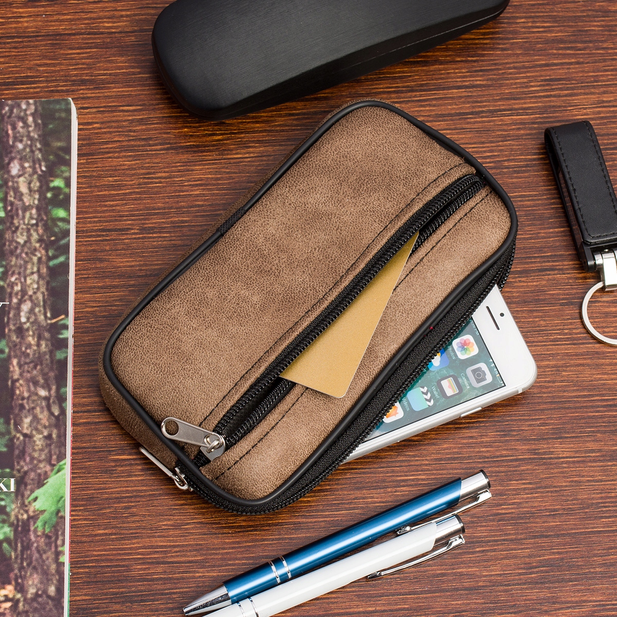 Etui na telefon dokumenty do paska duże płaskie saszetka 2 komory pokrowiec
