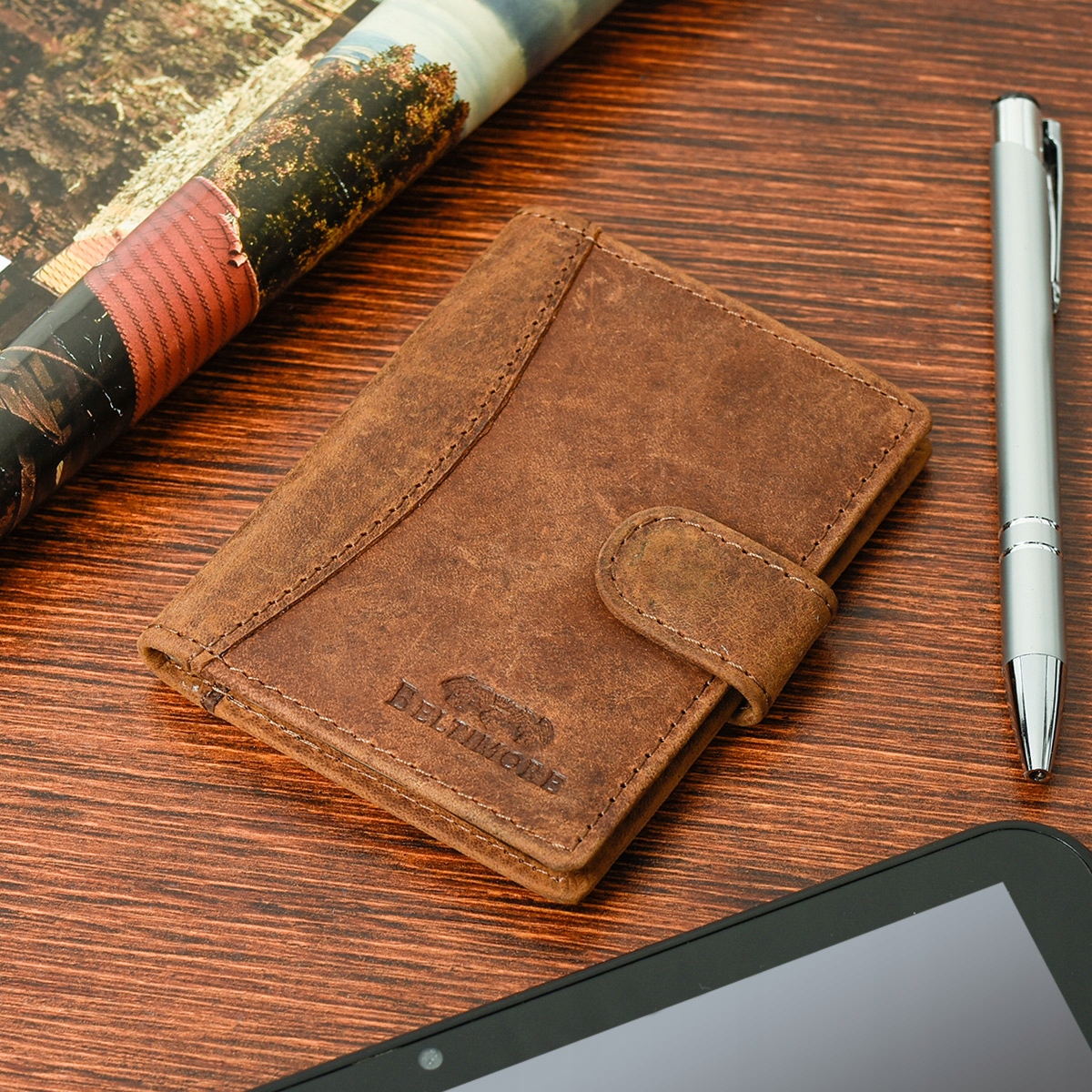 Wysokiej jakości, solidne, skórzane etui na wizytówki marki Beltimore®® z dodatkowym zabezpieczeniem antykradzieżowym RFiD.