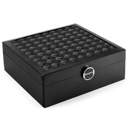 Kuferek ma kompaktowe wymiary: szerokość 25,50 cm, wysokość 9,00 cm oraz głębokość 25,50 cm. Dzięki tym proporcjom bez problemu zmieścisz w nim wszystko, co niezbędne w codziennym życiu – od kosmetyków po dokumenty. Mimo niewielkich rozmiarów, oferuje wystarczającą przestrzeń do przechowywania, co sprawia, że jest idealnym rozwiązaniem zarówno na co dzień, jak i na specjalne okazje.